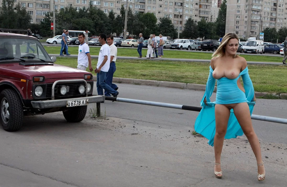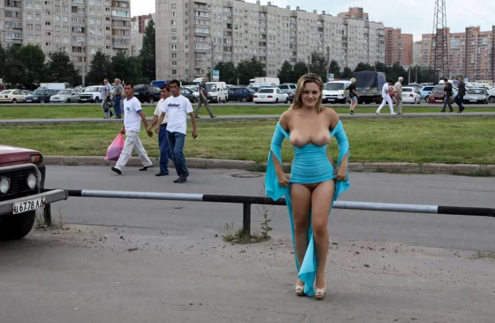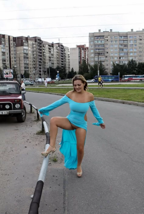 Она остановилась у витрины кафе, якобы разглядывая меню, и слегка раздвинула ноги под платьем. Юбка задралась ровно настолько, чтобы ветерок проник под нее, обдувая горячие складки. Бритая киска пульсировала, клитор набух от адреналина, а соки уже стекали по внутренним бедрам, оставляя липкий след. Рядом прошел парень с наушниками — он мельком глянул вниз, но увидел только тень под платьем, не больше. Она улыбнулась про себя, чувствуя, как сердце колотится: "Они так близко, а не видят..."Вдруг она присела на корточки, якобы поправляя туфлю. Платье натянулось, и на миг ее интимные места полностью открылись ветру и случайным глазам — розовые губки раскрылись, блестя от влаги, клитор торчал, как маленькая жемчужина. Прохожий мужчина замер, его взгляд скользнул по ее ногам вверх, но она быстро встала, ткань упала на место, скрывая все. Он покачал головой, думая, что почудилось. А она пошла дальше, грудь колыхалась в такт шагам, соски терлись о платье, посылая волны удовольствия прямо в киску. Толпа шумела вокруг, но ее тайна была в безопасности — пока. Внутри она горела: еще один шаг, и она кончит прямо здесь, от одного только риска...